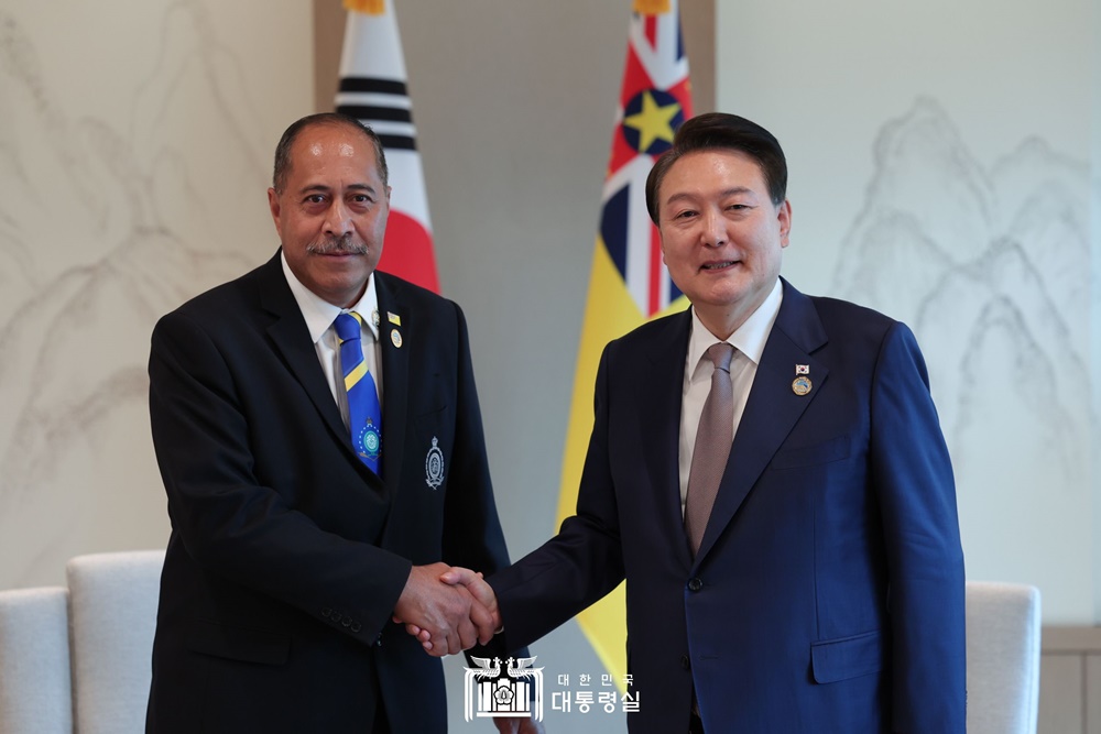 ※ (니우에) 윤석열 대통령은 이번 한-태평양도서국 정상회의 계기에 니우에와 수교(5. 29(월) 08:00)함으로써 한국이 태평양도서국 모두와 외교관계를 수립하게 되어 뜻깊게 생각한다고 했습니다. 양 정상은 이번 공식 외교관계 수립을 기반으로, 향후 개발협력과 기후변화 분야를 중심으로 협력을 강화해 나가자고 했습니다.